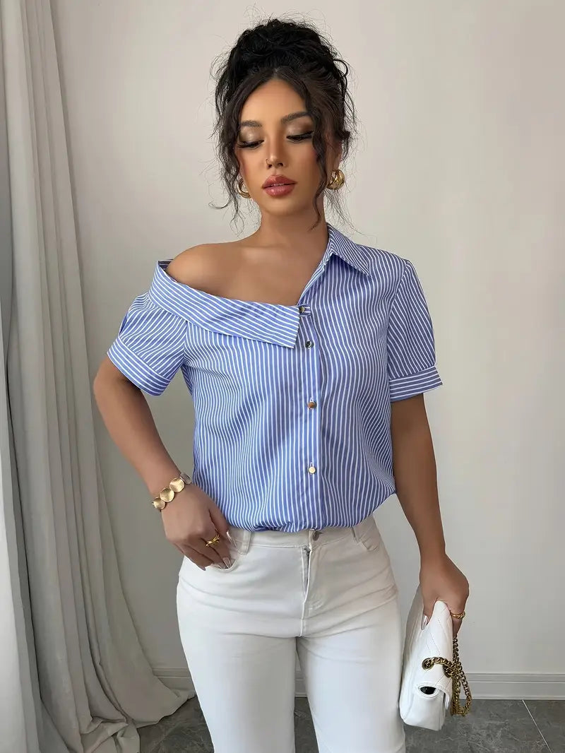 [Off-Shoulder Shirt] Elegant Women's Off-Shoulder Striped Shirt