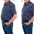 The Front of the vest contains 12 Engineered spandex structures, which hug, form and shape the front of the stomach area forming a desirable firm and flat surface. This gives the user an athletic, flat and slim look, and can reduce waist size by up to 2 Sizes!! The upper area also shapes the top of the chest giving a shapely and firm front look, removing signs of "manboobs"