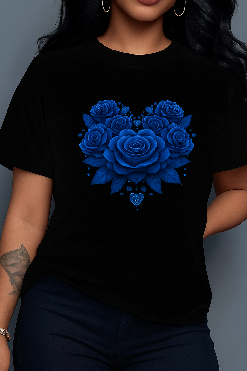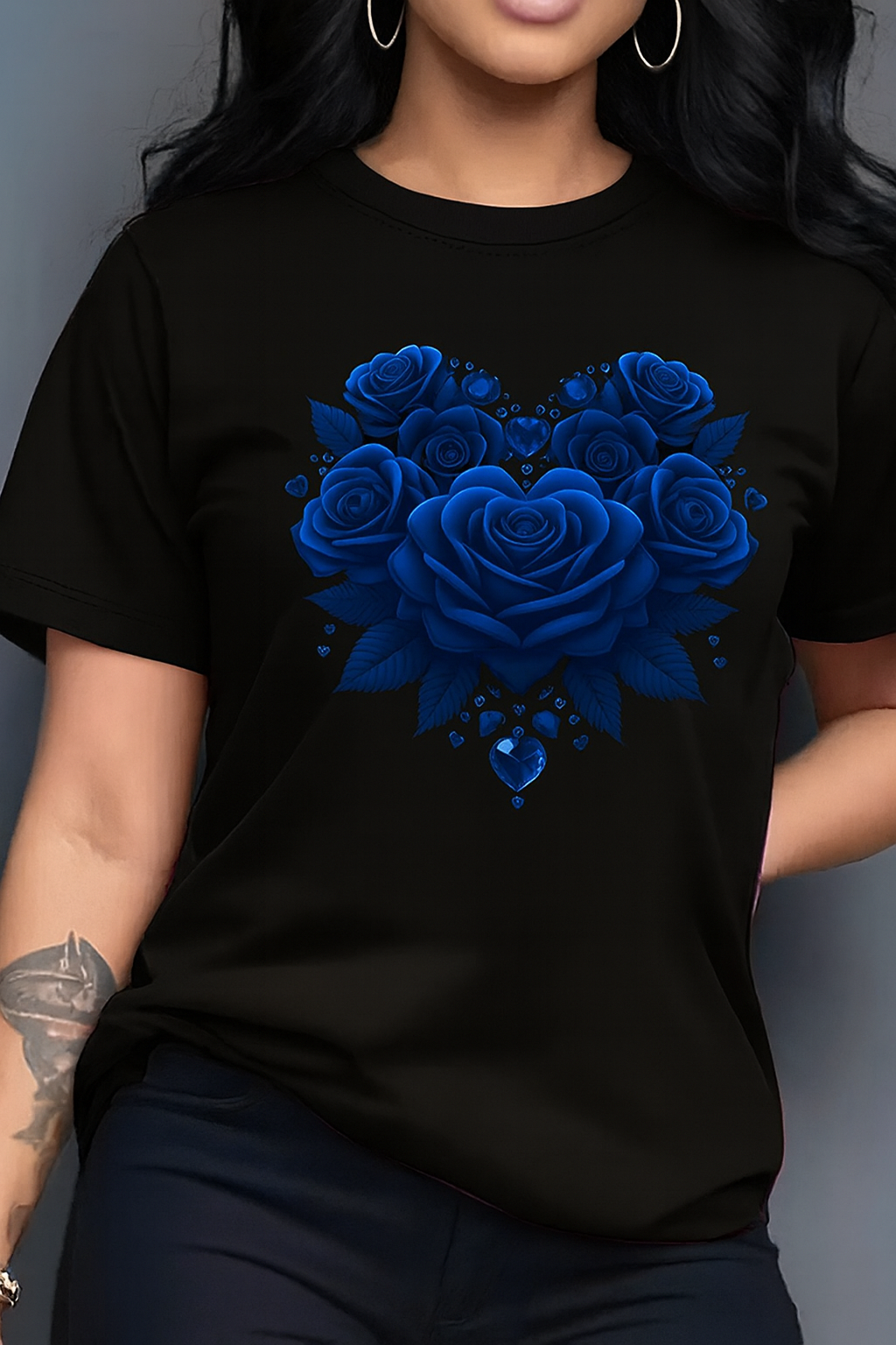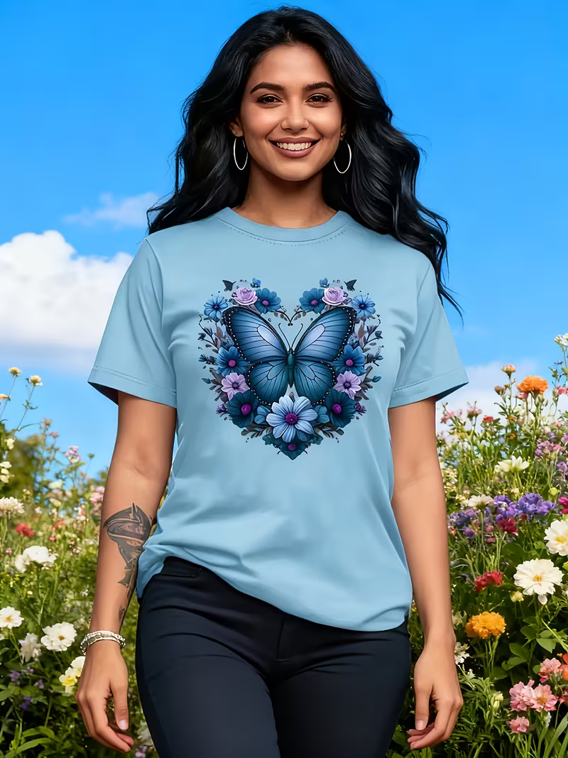 Women'S Floral Rose Heart Print T-Shirt