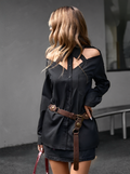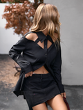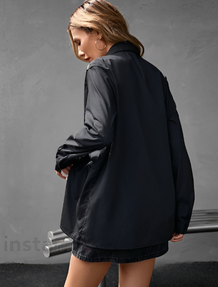 Women'S Solid Color Long Sleeve Shirt with Cut-Out Chest and Collar